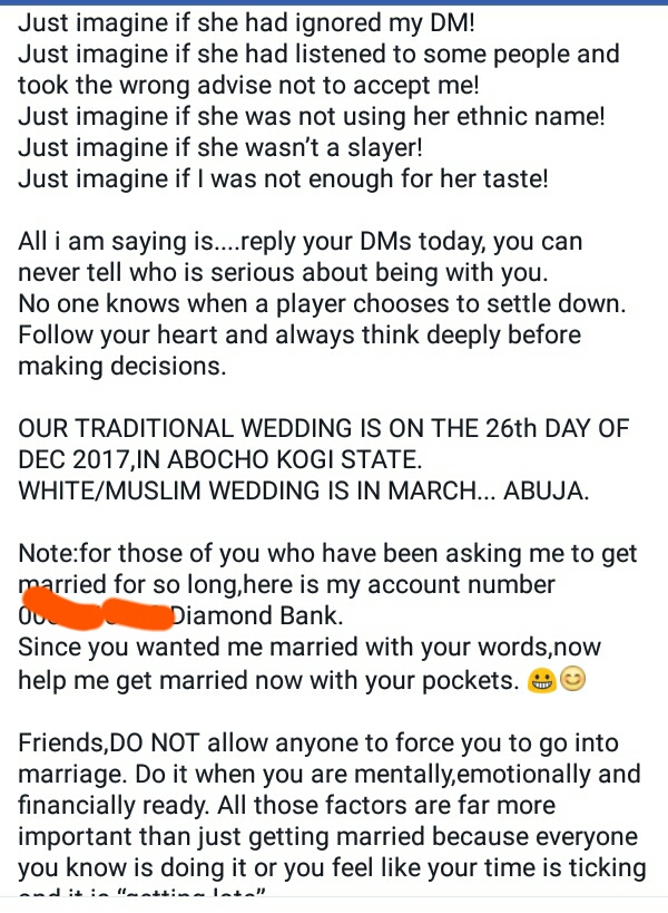 You are now reading the article Christian Man And A Muslim Lady From Kogi Who Met On Facebook Set To Wed(Photos,Videos) With link address https://newstoday-ok.blogspot.com/2017/12/christian-man-and-muslim-lady-from-kogi.html